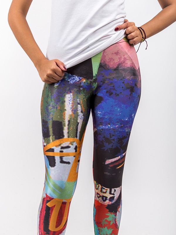 TILTED FRIDAY Expressionista Leggings is inspired by Jean-Michel Basquiat. It shows a great mix of expressionism and graffiti art.